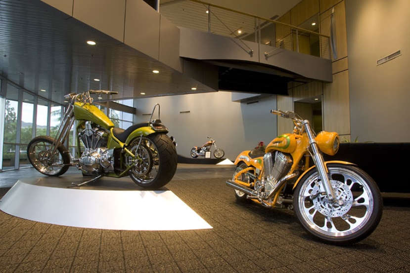 This ultra-modern, more than 85,000 square-foot complex in Yorba Linda, California is home base for the Cobra team. Inside is a marvelous blend of state-of-the-art manufacturing technology and hands-on craftsmanship. In fact, some of the machines and procedures used to make your clutch covers, floor boards, sissy bars or exhaust systems can range from huge multi-ton presses, computer-driven milling, laser cutting systems to good old hand-forming. And it's all done with a trained eye, the latest in computer-controlled machines and when needed, even a very big hammer.